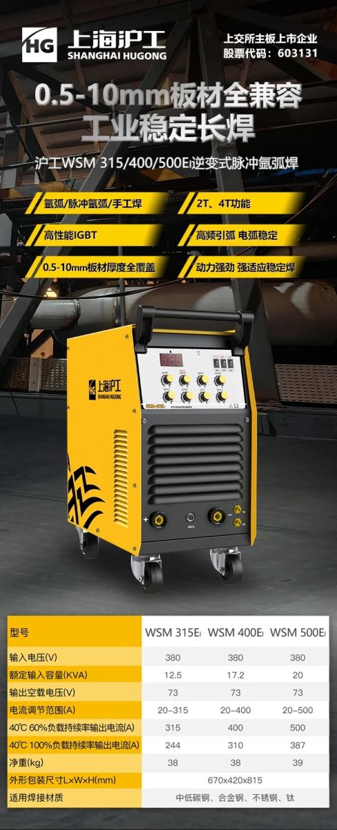 【滬工焊機】WSM315/400/500EI逆變式氬弧焊機,0.5-10mm板材全兼容,工業(yè)長焊穩(wěn)定之選!